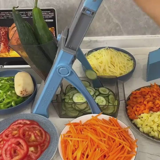 4-in-1 Multi-Function Design: Slice, dice, julienne, and strip-cut fruits and vegetables efficiently.
